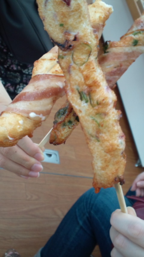 揚げたてと冷たいお茶!