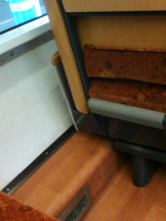 こっちは多分安い指定席なんだろうけど、かんわいぃ!この在来線!木って!木!